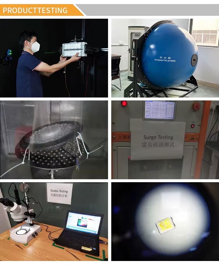 • Lámpara LED: Chip 5730 SMD, alta eficiencia luminosa, bajo consumo, disponible en potencias de 600W, 800W, 1000W, 1200W, 2000W y 3000W.